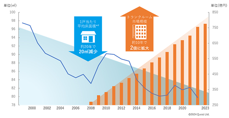 都市部を中心に居住面積の狭小化が進む中、利便性の高いエリアへの高品質なトランクルーム出店が増えたことで、消費者が受け入れやすい環境が整ったことが需要拡大の大きな要因の一つとなっています。