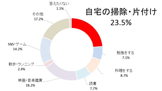 - 4人に1人の方が、増えた時間を“自宅の掃除・片付け”に費やしている。