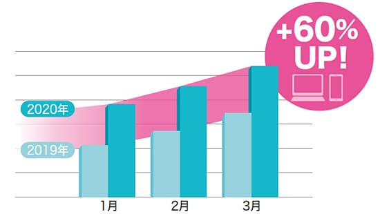 それに伴い、トランクルームをスマホやパソコンで利用申込みを行う事が出来る、キュラーズのオンライン申込みも前年比+60%増加。