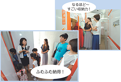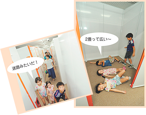 「BOXロッカータイプ・0.5畳・1畳・2畳・4畳以上」と、用途に合わせて選べる豊富な収納スペースを見ては、中に入り込んで大はしゃぎ!