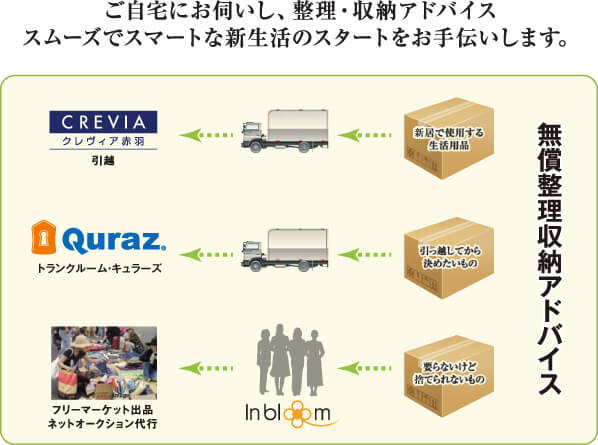 「ヒ・コ・ス」とは 引越しのタイミングで、収納の悩みを解決するサービス。整理収納アドバイザーが自宅訪問し、モノの要不要の仕分けをサポートしながら、新居での具体的な整理収納法を提案。要不要が即断できないモノはトランクルームへの一時保管を提案し、新居へ入居後に再度検討できる時間を創出。不要品は、ユーザーに代わってフリーマーケットに出品し、再利用を促進。コンパクトかつスムーズな引越しを実現することで、収納スペースに制約がある集合住宅の住空間の有効活用だけでなく、地球環境にも配慮。2012年グッドデザイン賞受賞。