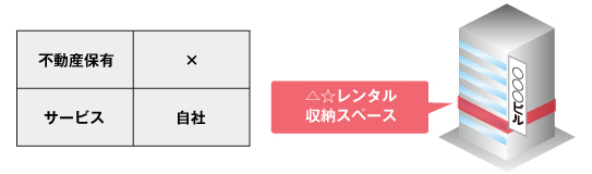 「ABC不動産」は、空きフロアを「レンタル収納」のオペレーター「△☆レンタル収納スペース」に対してサービス運営を委託して収納サービスを始めました。