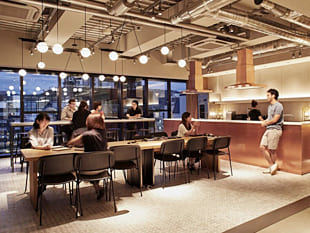 ライフスタイル型ホテルは、カプセルホテルの領域にも出現している。2017年7月、ミレニアル世代向けに特化した宿泊施設として、グローバルエージェンツが京都にオープンした「ザ・ミレニアルズ」がそれだ。ホテル全面積の20%を共用部に充て、24時間を通して利用できるワークスペース、ミーティングルーム、キッチン、食卓、バーカウンターを設けている。 同社の山﨑剛社長は「ミレニアル世代は他の世代とは異なり、目的に応じて合理的に手段を選ぶ。必ずしも所有にはこだわらず、シェア一辺倒でもない。多様性を尊重し自由を求めるこの世代向けに実現したのがザ・ミレニアルズだ」と強調する。
