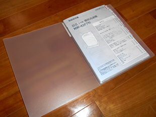 取扱説明書は、厚みのあるモノも多いので、ファイルはリング式より固定式のほうが、安定感があってオススメです。